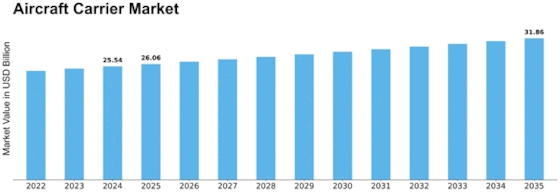 As per Market Research Future analysis, the Aircraft Carrier Market was valued at USD 25.54 Billion in 2024 and is anticipated to grow to USD 31.86 Billion by 2035, registering a CAGR of 2.03% during the forecast period 2025–2035. This growth reflects consistent investment in maritime security and naval aviation capabilities worldwide.